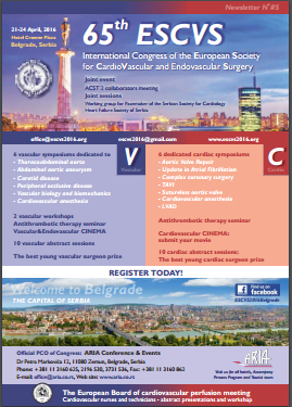 obaveštenja Udruženje kardiologa Srbije nazad 23.02.2016 65. međunarodni kongres ESCVS Najava kongresa 65 ESCVS International Congress of the European Society for CardioVascular and Endovascular Surgery 21-24 April 2016 Hotel Crowne Plaza Belgrade, Serbia